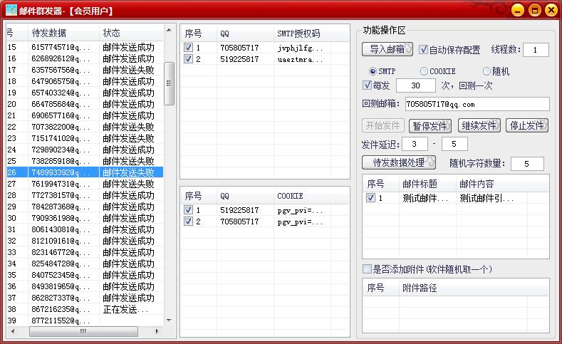 1.4 软件两种发件接口,支持SMTP和COOKIE发件,也可以选择随机使用接口